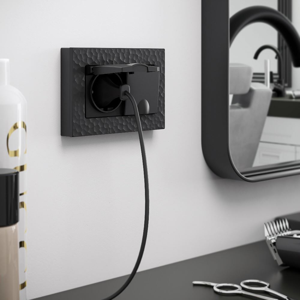 Розетка встраиваемая двойная влагозащищенная Werkel с заземлением, шторками и защитной крышкой Черный матовый W1172208