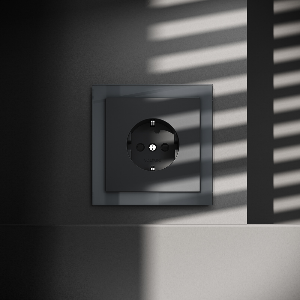 Розетка встраиваемая Voltum S70 с заземлением и шторками Графит VLS040207