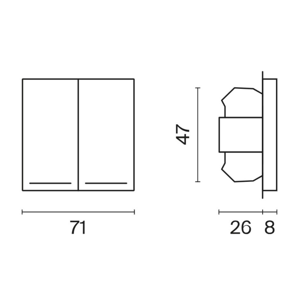 | Тип товара | Выключатель двухклавишный встраиваемый проходной |